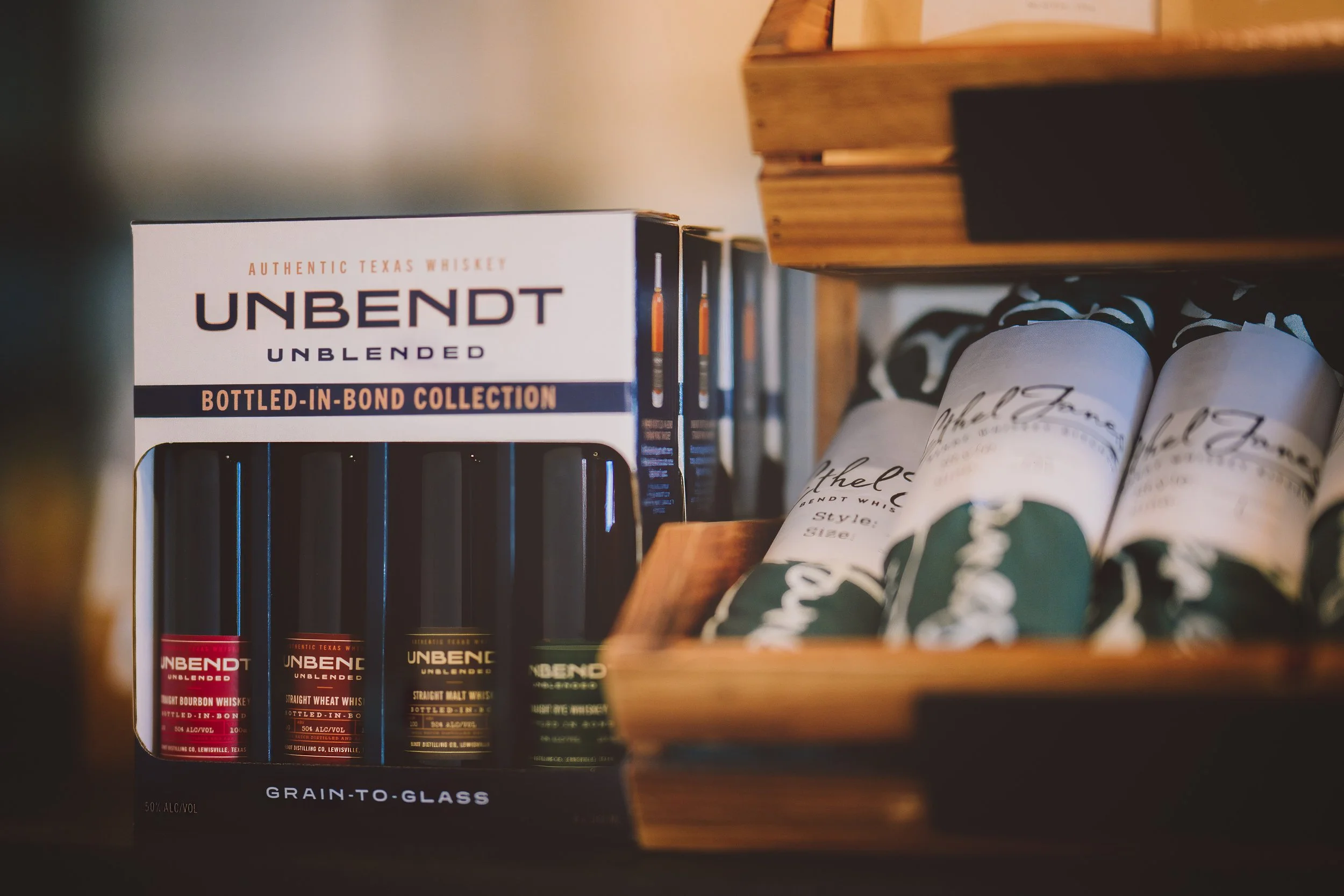 Not only do we offer a cozy restaurant, scratch-made meals, craft cocktails and sweets, but we are also a bottle shop! Stop by and pick up your favorite local spirits, made grain-to-glass right here in Old Town Lewisville at BENDT Distilling Co!